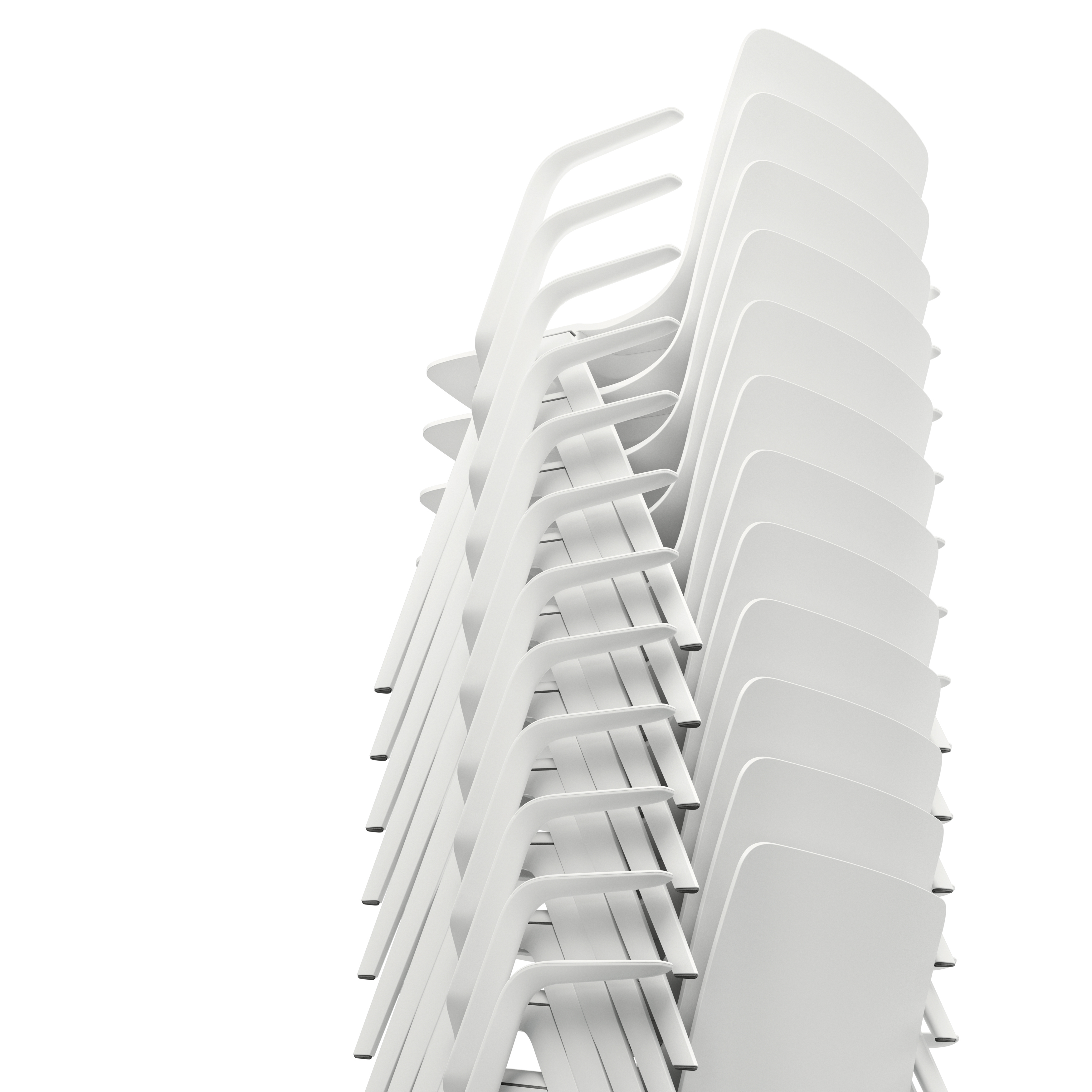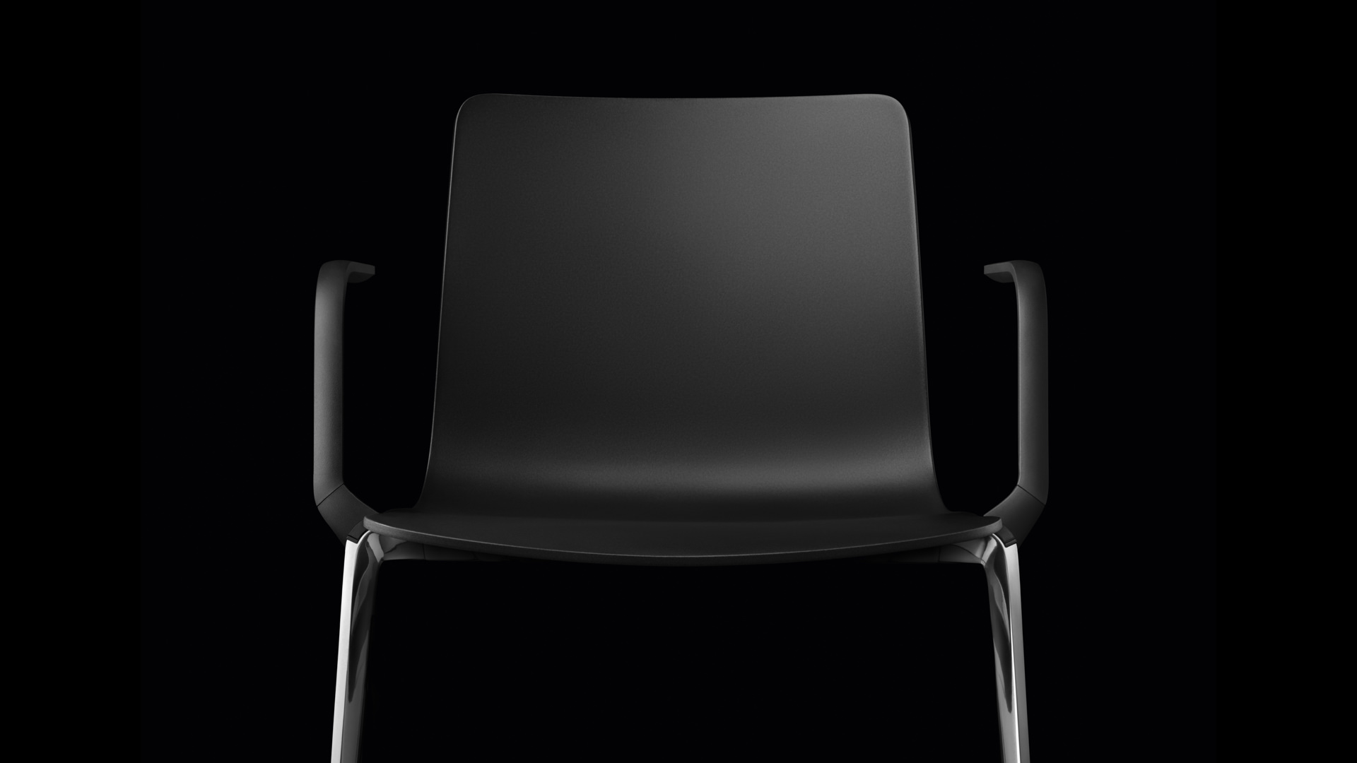 an essential component of the designconcept is the liquid connection between the shell and the slim legs. placed in a row, only the width of a singleleg will be visible, which has a great calming effect on the overall impression. A-chair does not distract from the architecture – noteven with 1,000 chairs in the same room. thanks to its modular construction, the seat shells and frames of this all-purpose chair can be combined in many variations – creating exciting contrasts or a harmonious entity. the die cast aluminium orplastic frames can be configured with seat shells made of different materials and featuring different colours.