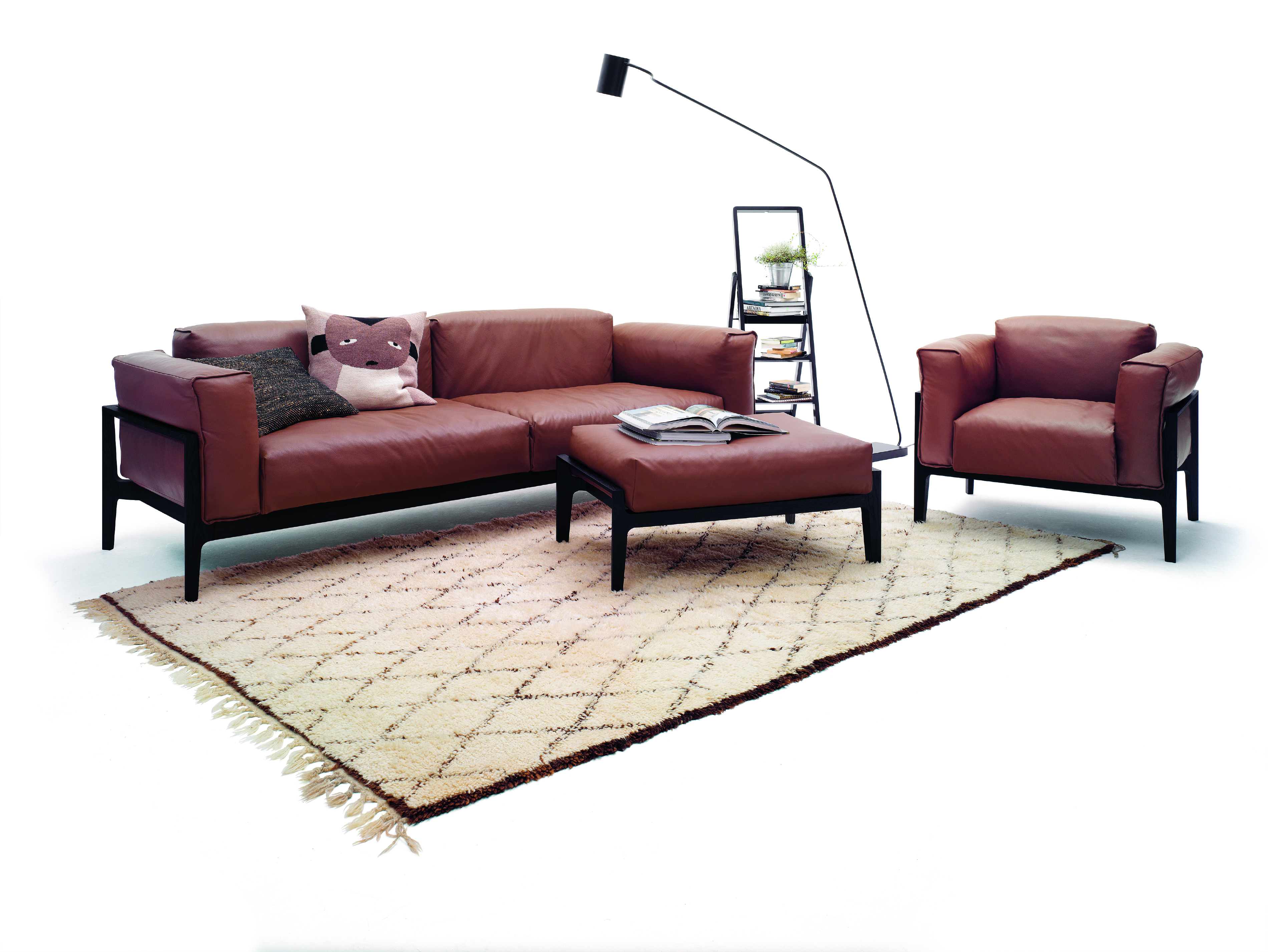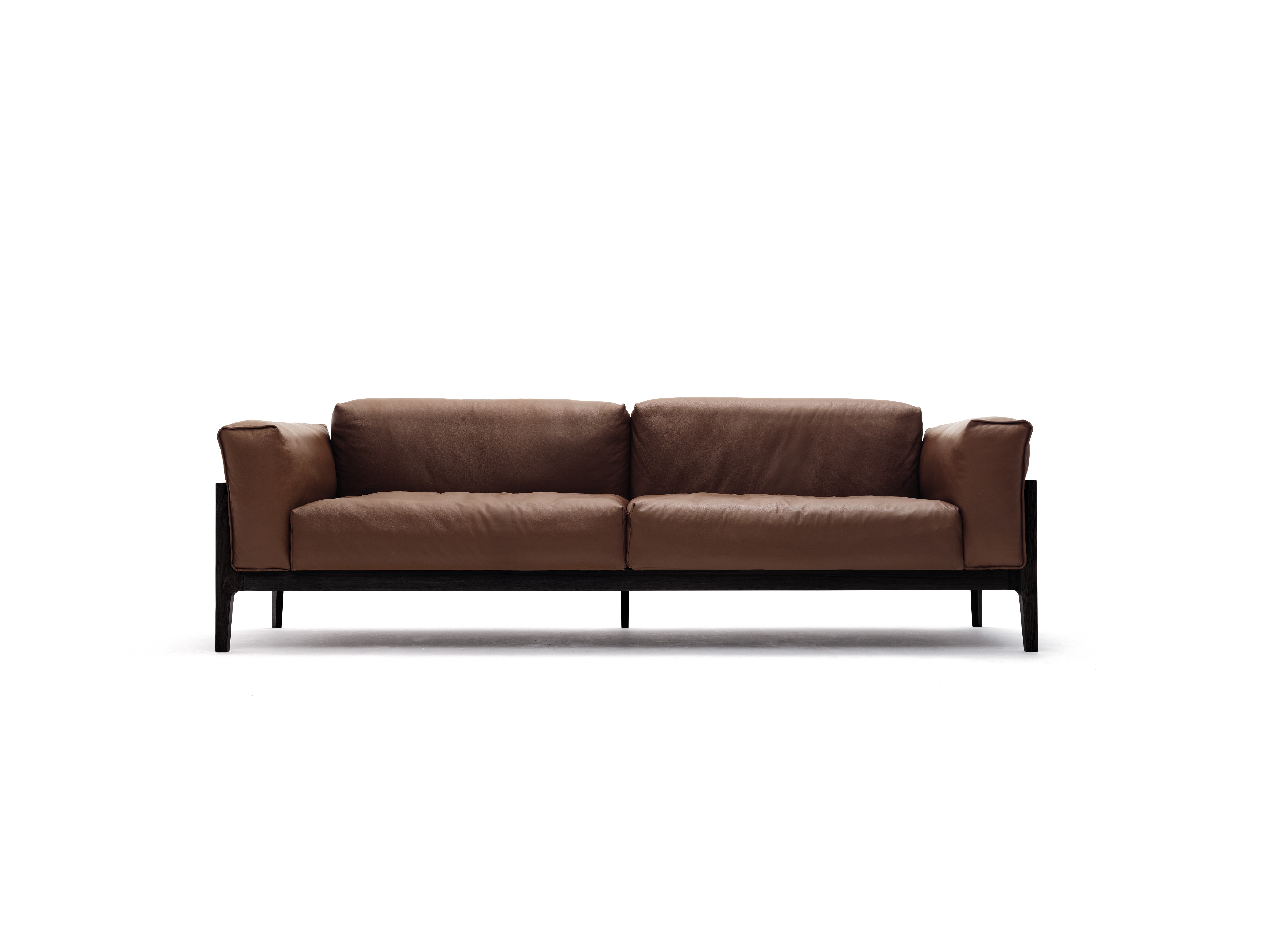the completely newly developed sofa 'elm' succeeds effortlessly in bridging the gap between external austerity and absolute inner softness. to achieve this, 'elm' combines a fine, simple wooden frame in oak, walnut or in a lacquered finish with large, comfy cushions. producing a sofa that makes an impression from all sides – especially when you sit on it.