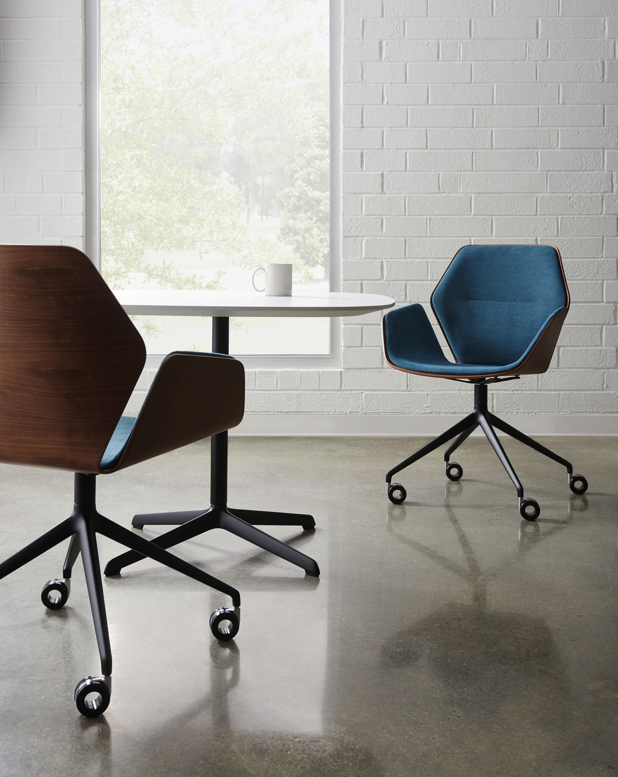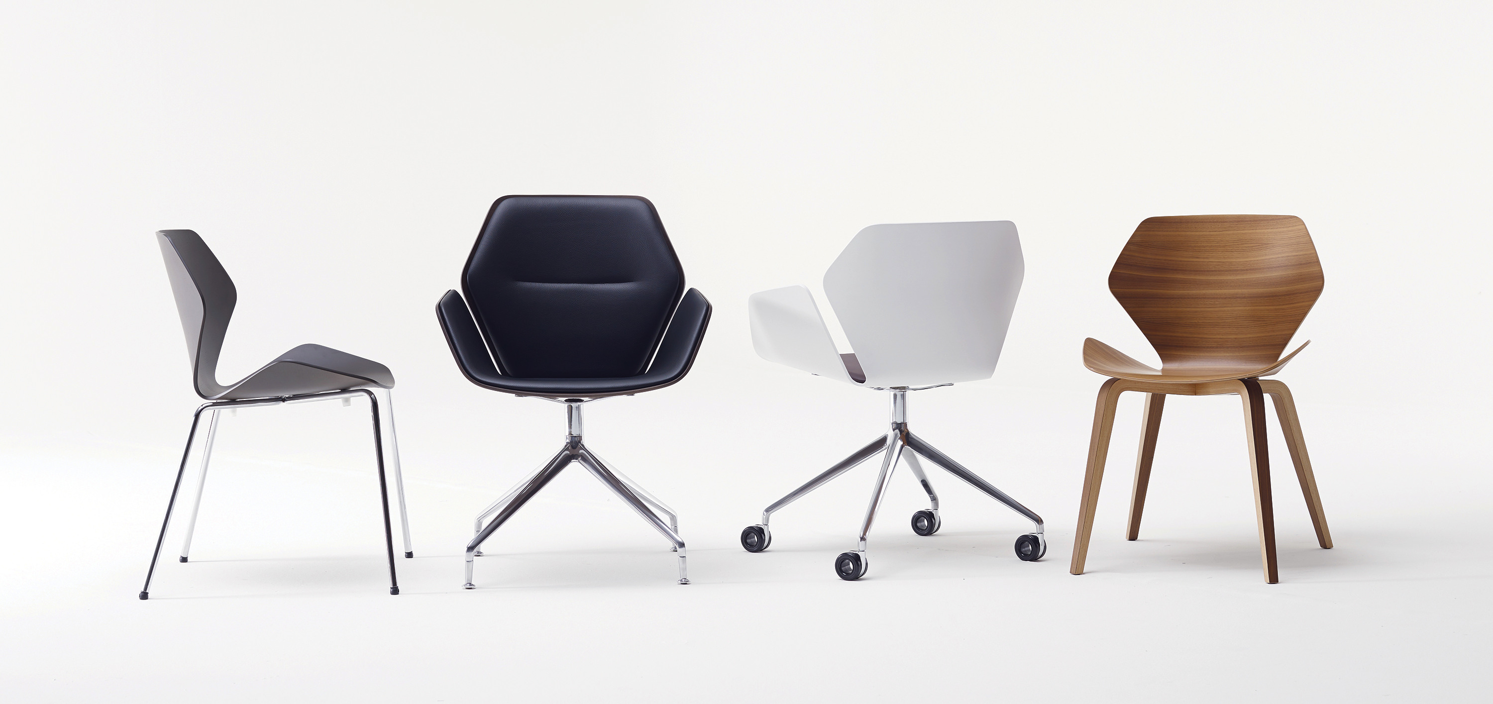 the ginkgo chair, inspired by the leaf of the ginkgo tree, is an elegant yet durable bent plywood chair with an organic aesthetic that making it feel as if the chair is hugging the body.